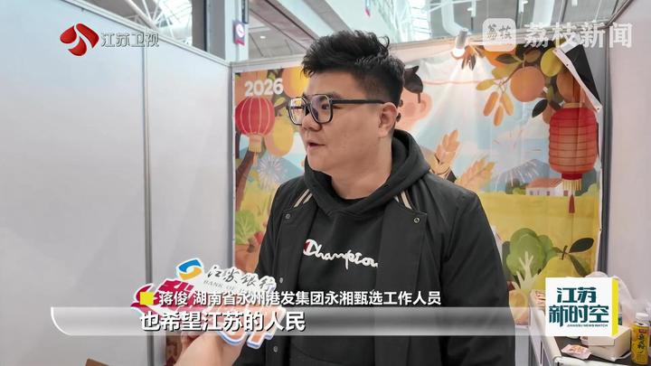 湖南省永州港发集团永湘甄选工作人员蒋俊说:“推荐一下来自我们永州的地标产物,让江苏人民也能尝一尝永州美食。”