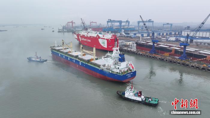 江苏扬州造船业迎开门红 63500吨“中达门”轮交付启航