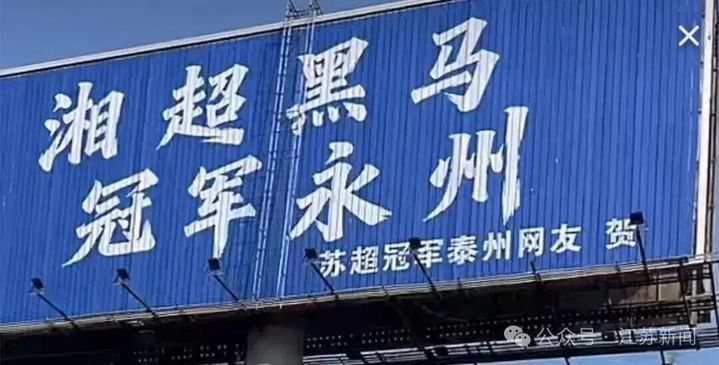 谁能想到,2026年第一波梦幻联动,居然是江苏和湖南靠广告牌“卷”出来的。湘超联赛落幕,永州队霸气夺冠,本是湖南足球的高光时刻,却被热情的江苏网友,玩成了“苏超预热现场”,一场跨省狂欢就此引爆。