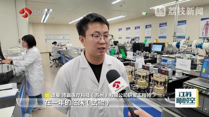 沛嘉医疗科技(苏州)有限公司研发工程师谭星说:“我们产品用在真实人体当中,大概有100多例,在一年的临床试验随访结果来看的话,它的治疗率是100%。”