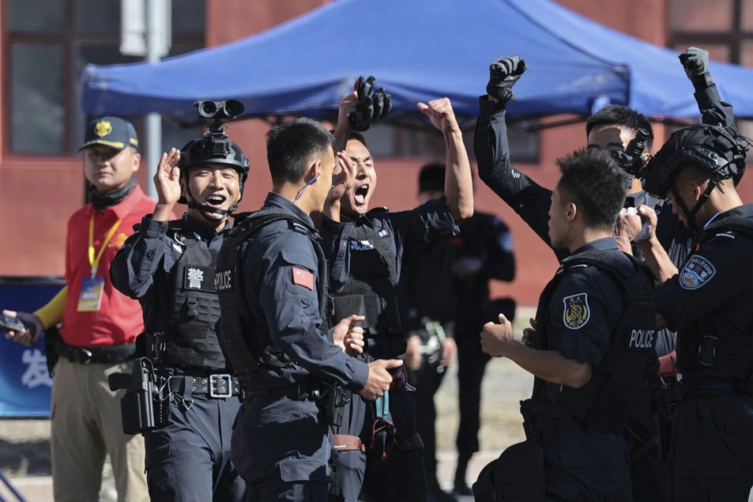 实战本领进一步增强。常态组织实战训练1800余批次、参训10.5万人次,举办覆盖全警的江苏公安大讲堂,邀请全国知名专家学者进行专题辅导,不断提升全警的视野格局和业务水平。7月初,在“尖刀·使命”2025年全国公安特警挑战赛中,经过5天的激烈角逐,江苏公安特警队敢打敢拼、奋勇争先,从全国48支参赛队伍中脱颖而出,最终夺取团体冠军,取得了历史性突破。2025年,江苏公安机关15个部门警种在国际、全国比武竞赛中获得30项第一名或一等奖。