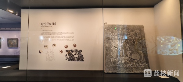 “在本展览中,我们特别将东汉的《侍者献食图》画像石与毕加索的《蓝眼睛的女人》并置呈现,开启了一场跨越1700余年的艺术对话。汉代匠人突破常规,在石面上刻画人物的多视角形象,以二维空间凝结动态与时间,体现“天人合一”的宇宙观。而毕加索则以立体主义笔法,解构与重组面容,探索视觉真实背后的情感与结构。两者虽处不同时代与文化,却都以独具匠心的方式,打破了单一的观察框架,在艺术中追求更深层的真实与表达。这正揭示了人类艺术创造中某种超越时空的共鸣。我们希望通过这样的对比,邀请观众一同感受艺术如何跨越地域与时代,直抵我们共通的感知与心灵。”徐州博物馆陈列展览部主任岳凯介绍说。