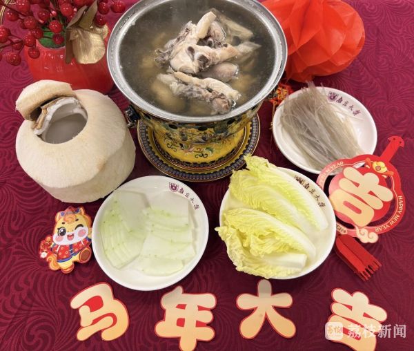 南京大学也已连续多年为留校学子提供免费年夜饭。今年更是暖心升级,将广受师生好评的椰子鸡端上了年夜饭餐桌。