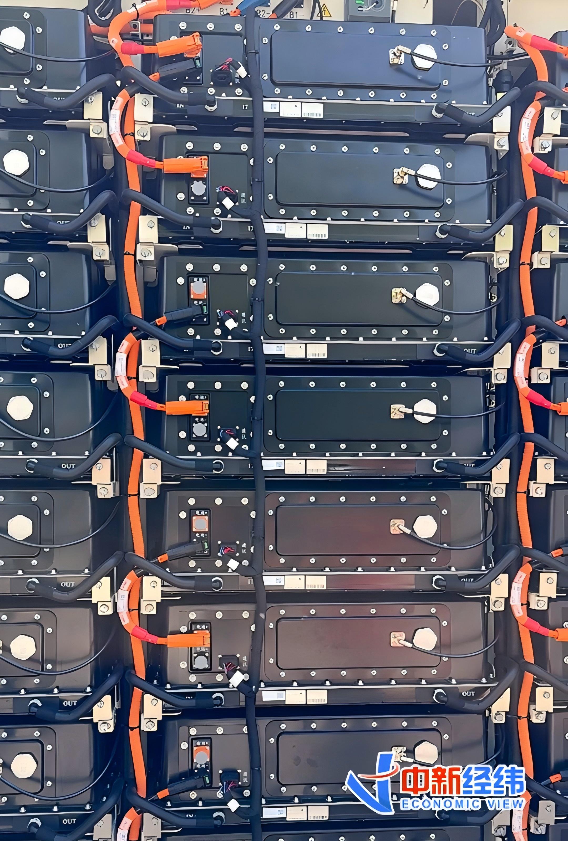 来到海博思创北京智能制造基地,中新经纬看到,数十个电池预制舱集装箱整齐摆放,大型运输车辆不断穿梭其间。