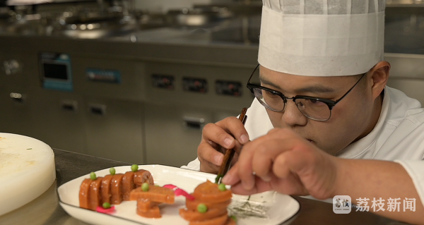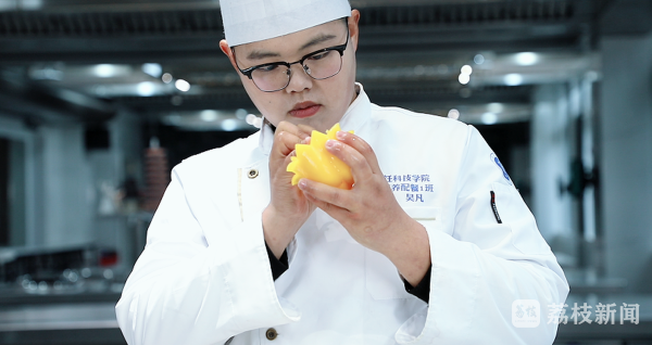 “淋热油时要听到‘滋啦’声才够香!”系列短视频中,主厨吴凡的示范专业又接地气。这位大一新生的经历颇具亮点:2016年开启烹饪学习之路,2019年入伍后从新兵成长为炊事班班长,获评“四有”优秀士兵,2024年退役,如今重返江苏旅游职业学院学习。“他将军营的严谨细致融入烹饪教学,传授的不仅是烹饪技术,更传递着精益求精的做事态度。”活动指导老师孙超表示。此外,吴凡还兼任学校国旗护卫队指导教官,并在江苏省大学生职业规划大赛中斩获金奖。