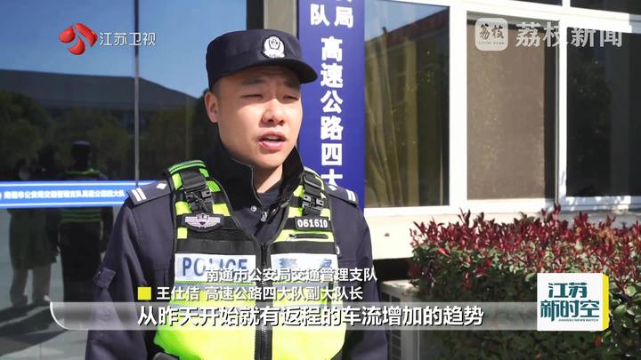 南通市公安局交通管理支队高速公路四大队副大队长王仕佶说:“从昨天开始就有返程的车流增加的趋势,昨天的返程流量是12.6万辆,今天预计可能总流量要突破13万辆。根据今年的预测,初六初七将达到返程的高峰,苏通大桥总流量会达到14万辆以上,甚至初七会达到15万辆以上。”
