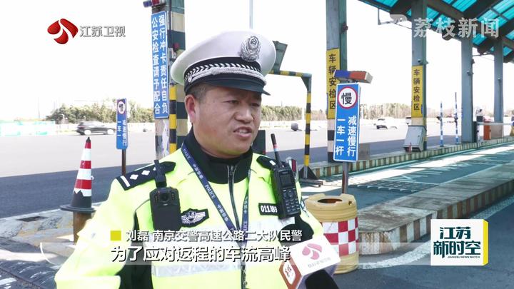 南京交警高速公路二大队民警刘磊说:“为了应对返程的车流高峰,首先在重点的路段增加了巡逻车辆的巡逻频次。第二个,我们依托道路监察系统实施24小时不间断巡查,重点发现车辆的路况信息,确保第一时间发现问题,第一时间处理。”