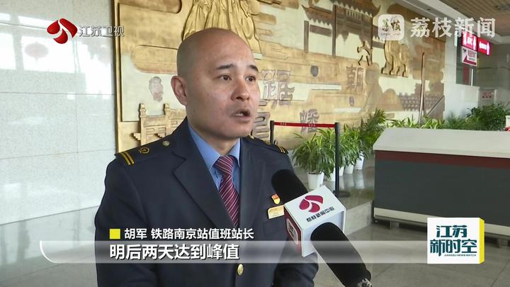 铁路南京站值班站长胡军说:“明后两天达到峰值,所以请广大旅客关注12306官方网站的通告以及车站的公告,预留好自己乘车的时间和市内交通时间,避免耽误乘车。”