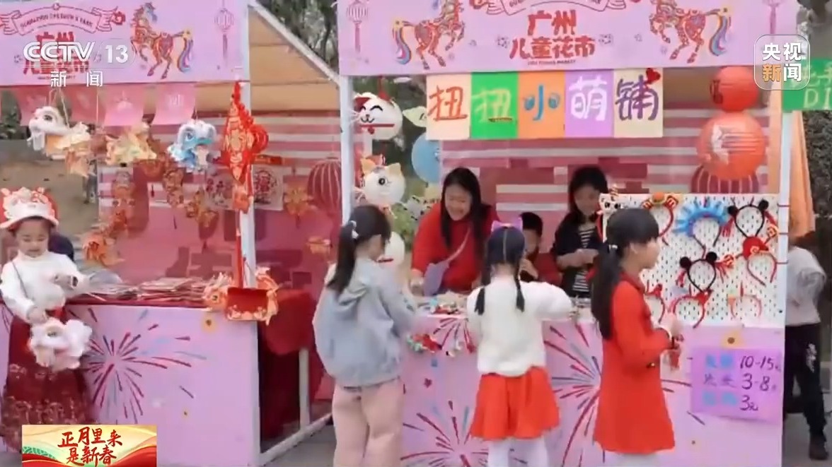 而在广州,儿童公园今年还举办了儿童花市。在5000平方米的区域内,设有60个特色摊位,所有摊位的高度都是儿童友好的1米左右,让小朋友轻松参与其中,共赏蝴蝶兰、水仙等上百种年宵花卉。此外,小朋友们还能在人工湖里,化身为花船上的摊主,一同体验经营的乐趣。