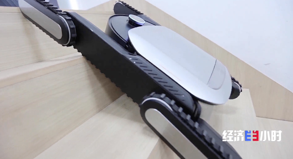 另一边,工程师们正在训练一台能爬楼的扫地机器人。这台扫地机器人安装了六条动力履带和多个传感器,上下楼梯轻松自如。今年一月,这款能爬楼的扫地机器人远渡重洋,在美国拉斯维加斯的国际消费电子展上大放异彩。