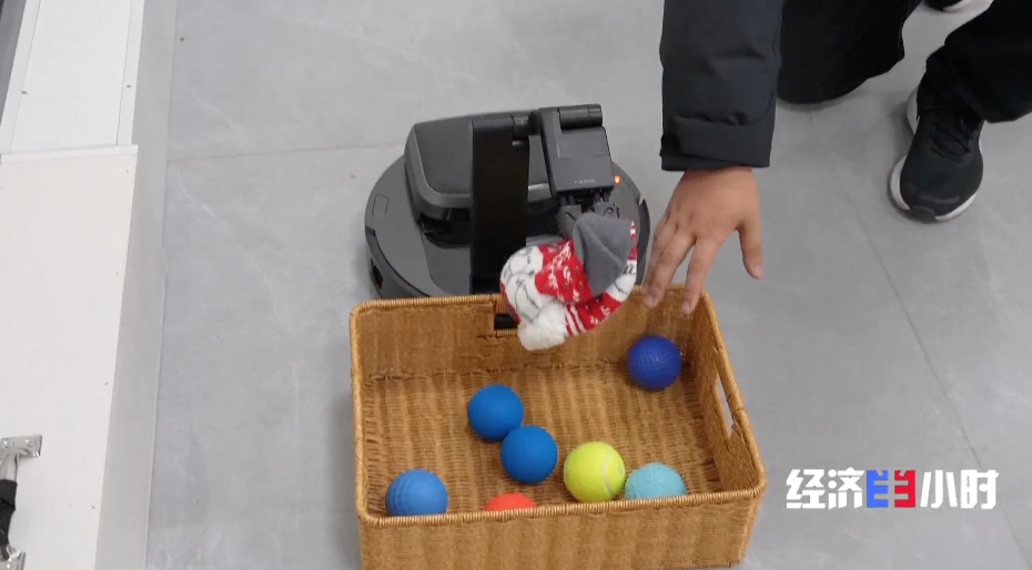 在实验室里,我们见到了最新迭代的扫地机器人,它加装了一只灵巧的手臂,可以一边清洁一边收纳家里的杂物。