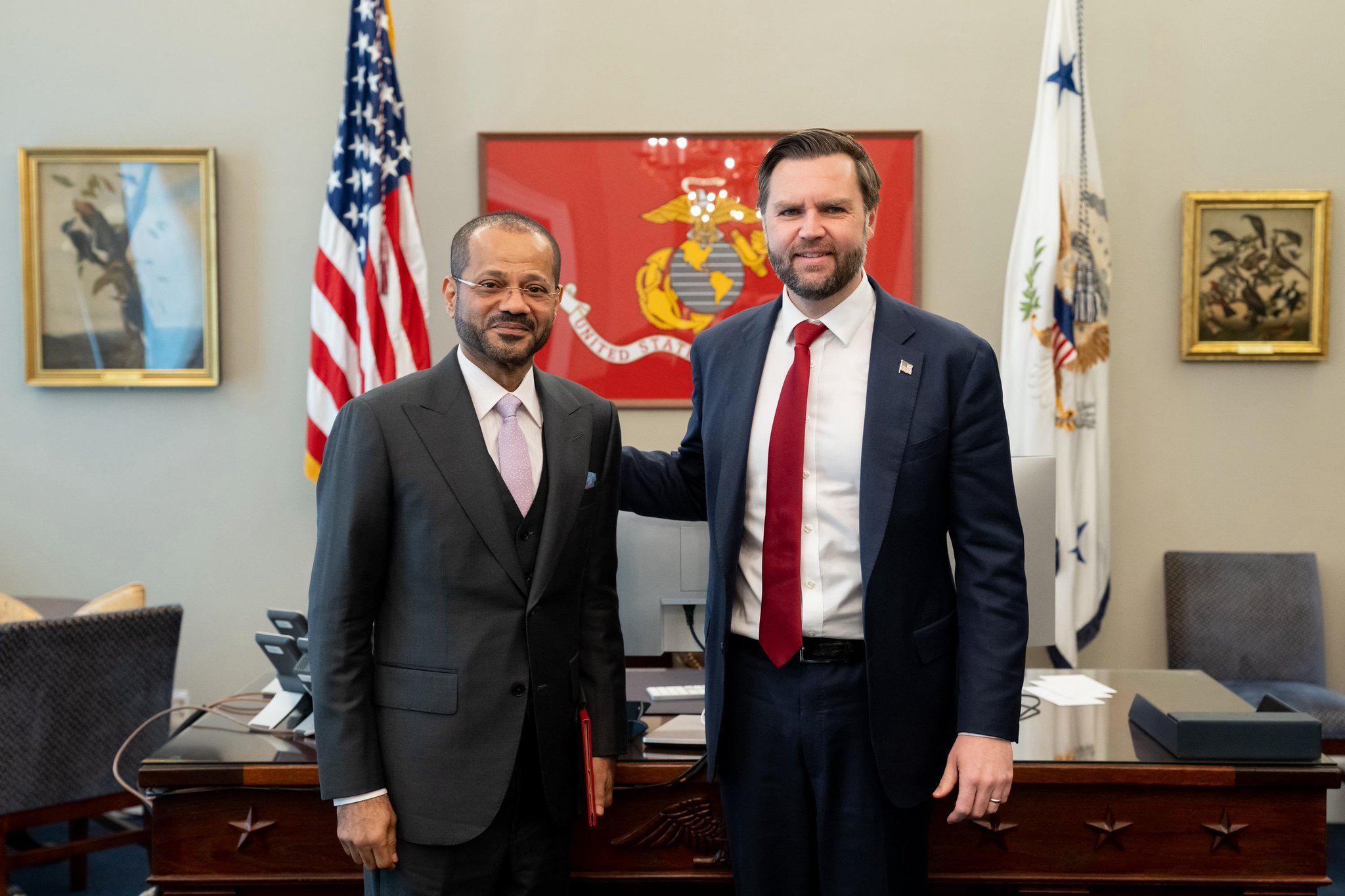 当地时间27日,阿曼外交大臣巴德尔在华盛顿会见美国副总统万斯。