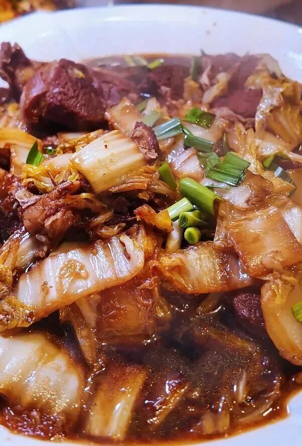 大白菜浸透了红烧羊肉的汤汁