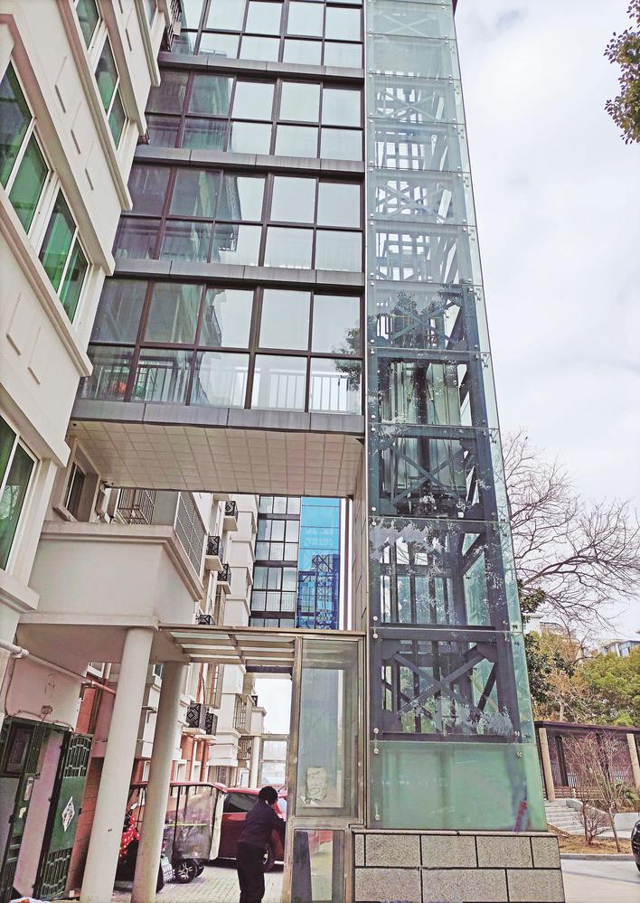 ▲老楼加装了电梯,再也不用费力爬楼梯了。 高加平 摄