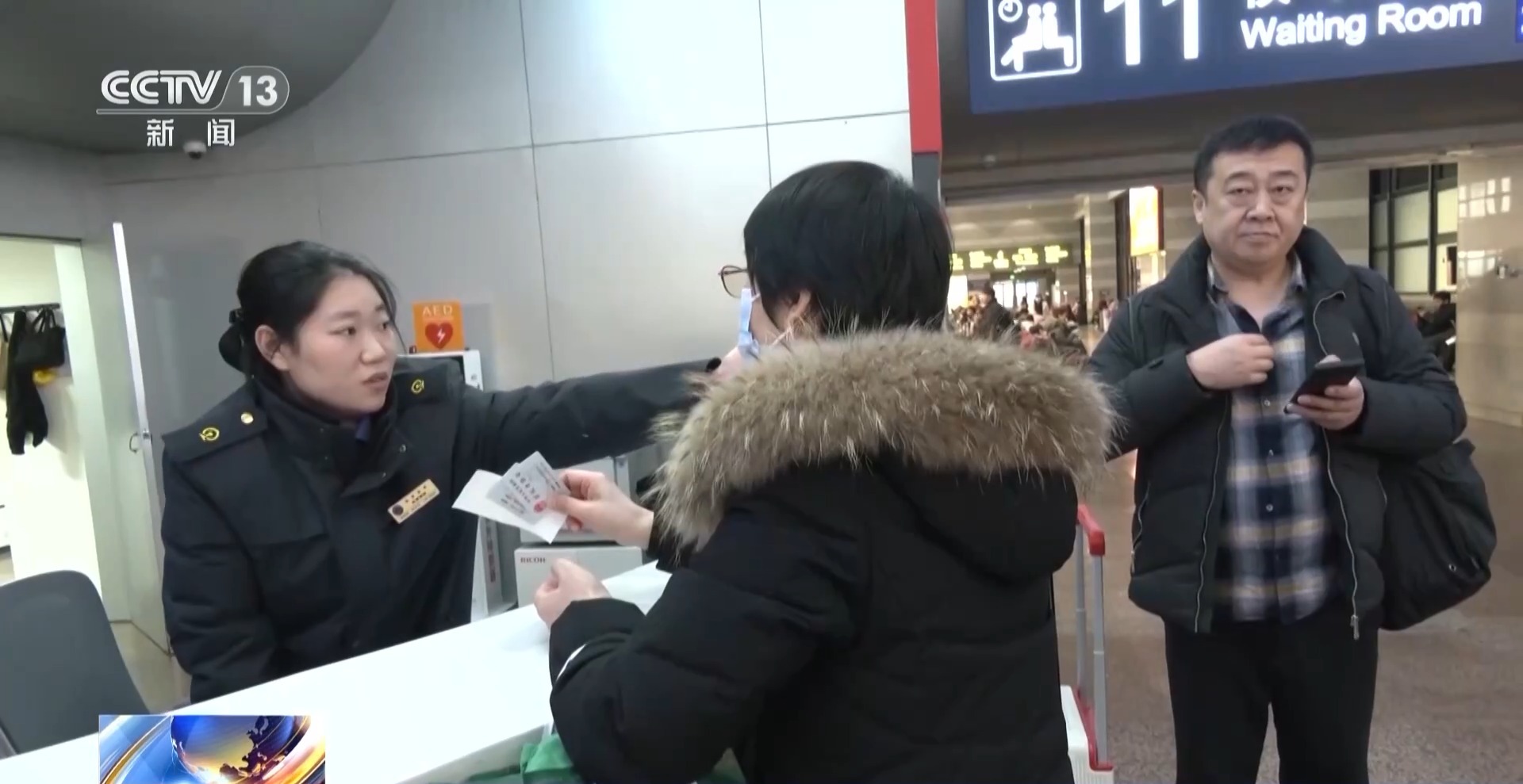 总台央视记者 曹丹:今年春运期间北京西站刚刚启用的空铁联运服务柜台,旅客可以在这里办理值机手续。每天从北京西站有24趟列车直达北京大兴国际机场,为旅客出行提供更多的便捷选择。