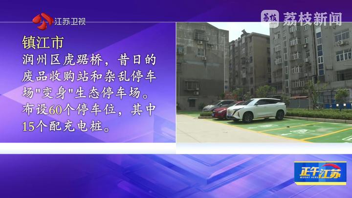 镇江市润州区虎踞桥,昔日的废品收购站和杂乱停车场“变身”生态停车场。布设60个停车位,其中15个配充电桩。
