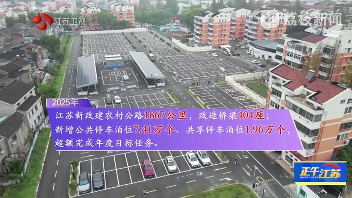 2025年,在出行便利方面,江苏新改建农村公路1867公里,改造桥梁404座;新增公共停车泊位7.41万个、共享停车泊位1.96万个,超额完成年度目标任务。道路更通畅、停车更省心,民生实事落地开花,江苏人的幸福感稳稳提升!