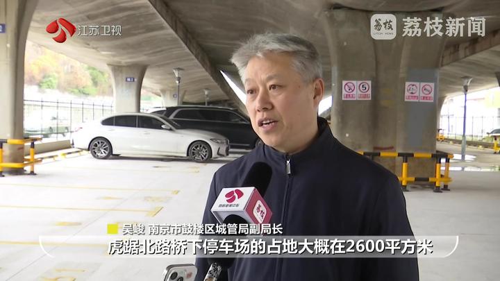 荔枝新闻中心记者田甜说:“这里是南京市鼓楼区虎踞北路高架桥北侧的一处桥下空间。目前这里经过整治之后,已经施划了63个标准的停车泊位。路灯、监控、道闸这些配套设施也在陆续地完善当中。”