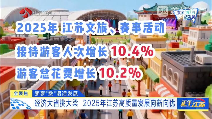 文旅、赛事活动推动服务消费提质扩容,“苏超”破圈成为顶流,接待游客人次、游客总花费分别增长10.4%、10.2%。