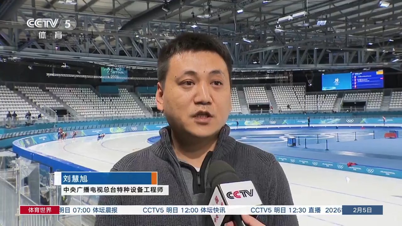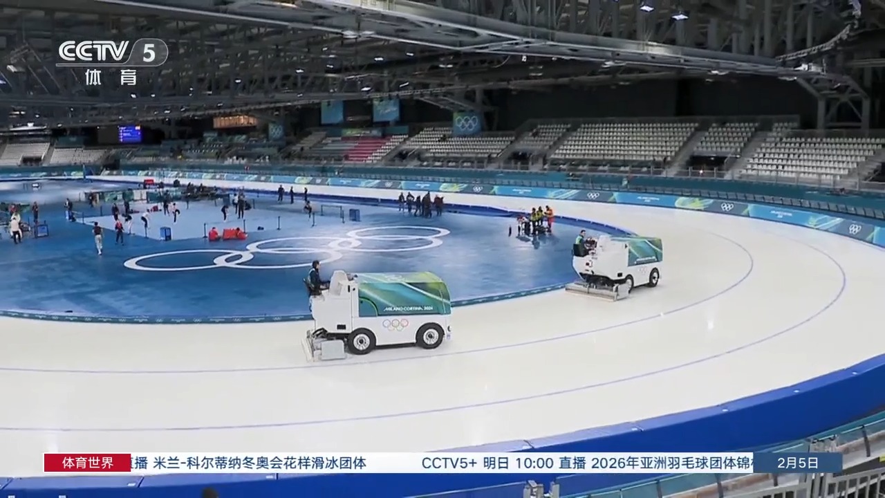 中央广播电视总台记者 徐莉:临时搭建的米兰速滑馆对于所有参赛选手来说,都是全新的考验和挑战。在这条赛道上将会创造怎样的成绩,我们就一起静待比赛开始。而在比赛期间,我们也一起期待由总台提供的特种设备,在转播中为我们呈现的精彩画面和瞬间。