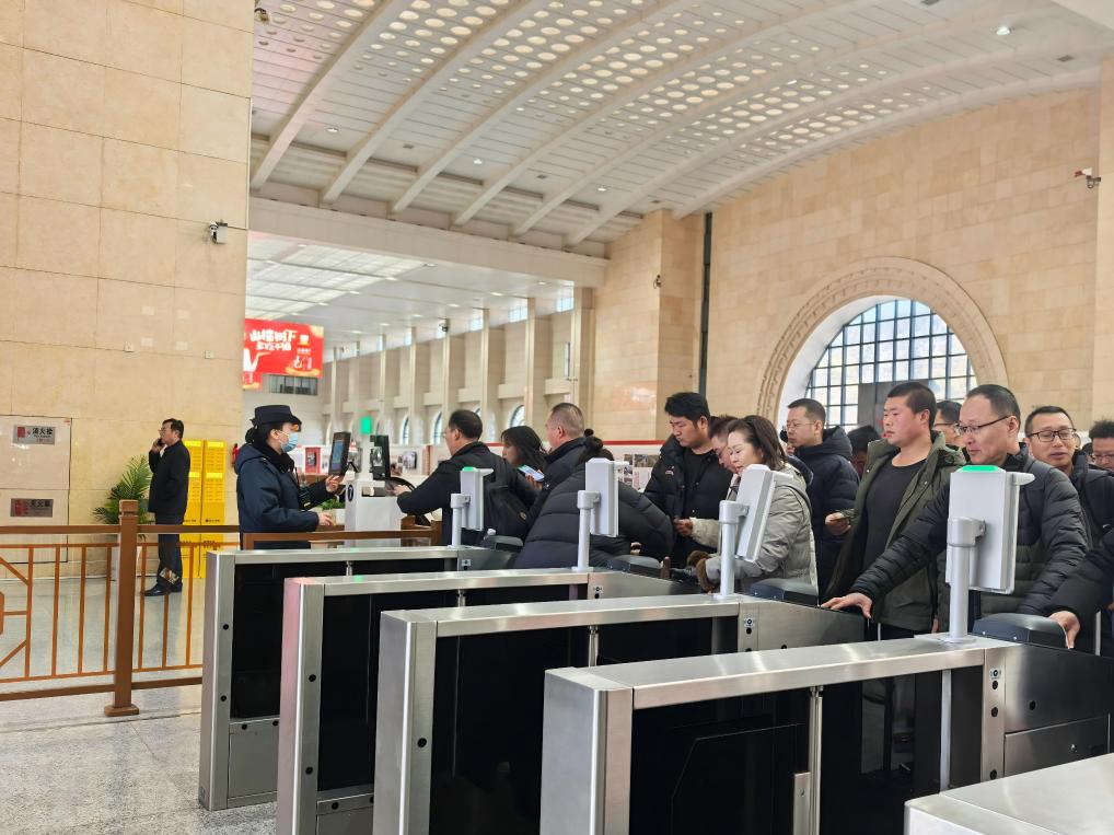 2月2日,乘客在延安站检票乘车。新华社记者付瑞霞 摄