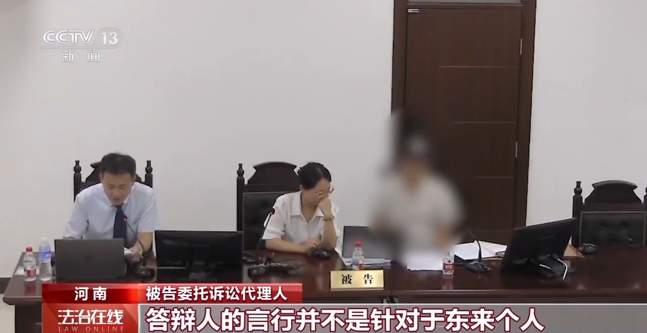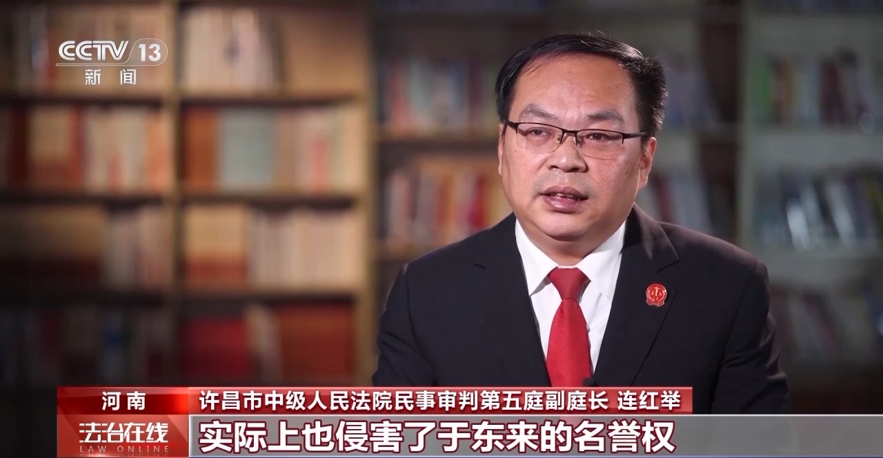 许昌市中级人民法院民事审判第五庭副庭长 连红举:柴怼怼编造了这些虚假信息或者说误导性信息,容易对公众造成误解,导致公众对于东来的信任度社会评价降低,实际上也侵害了于东来的名誉权。