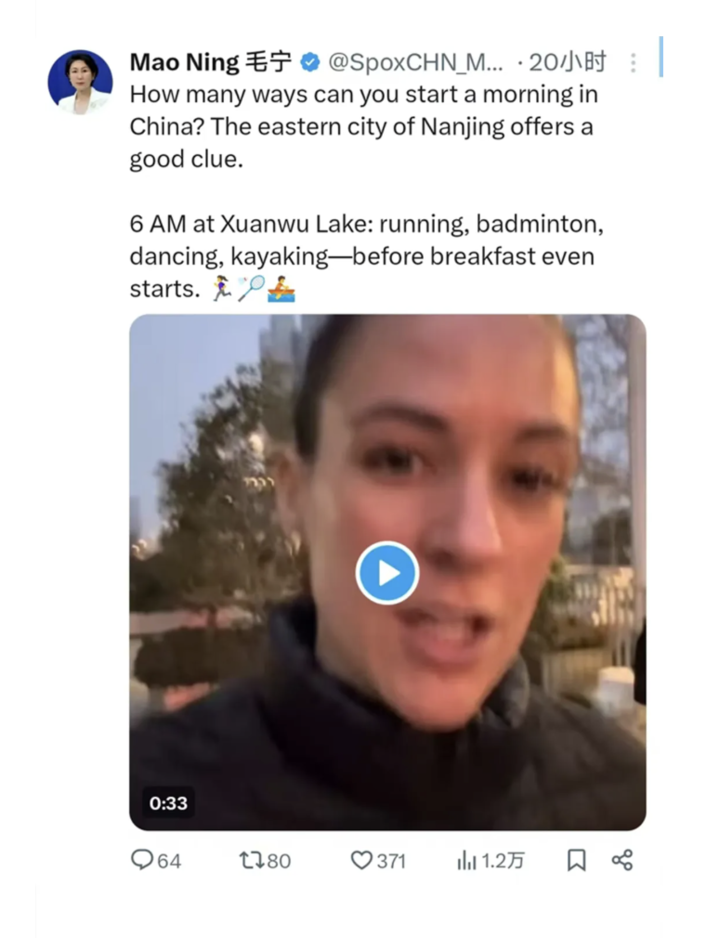 外交部发言人毛宁点赞南京