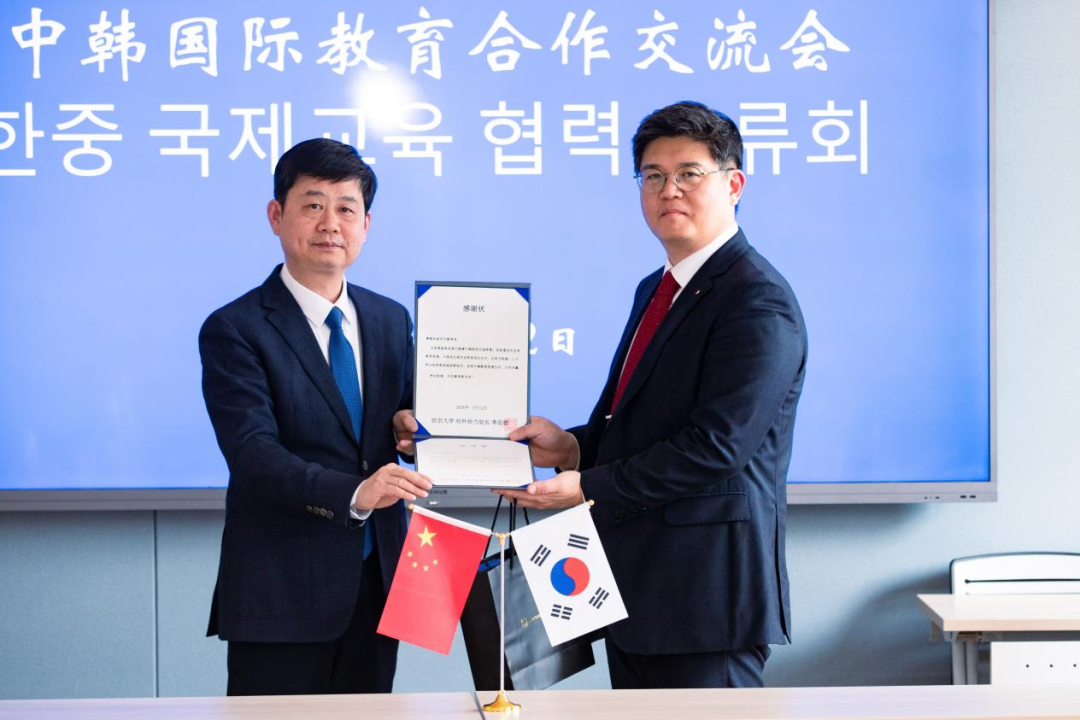 韩国汉阳大学、世宗大学、建国大学代表向南京市教育局颁发感谢状,并交换礼品,共叙中韩教育友好情谊。
