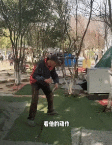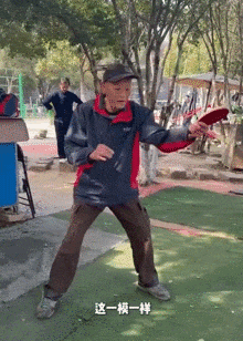 独自训练乒乓球动作的大爷