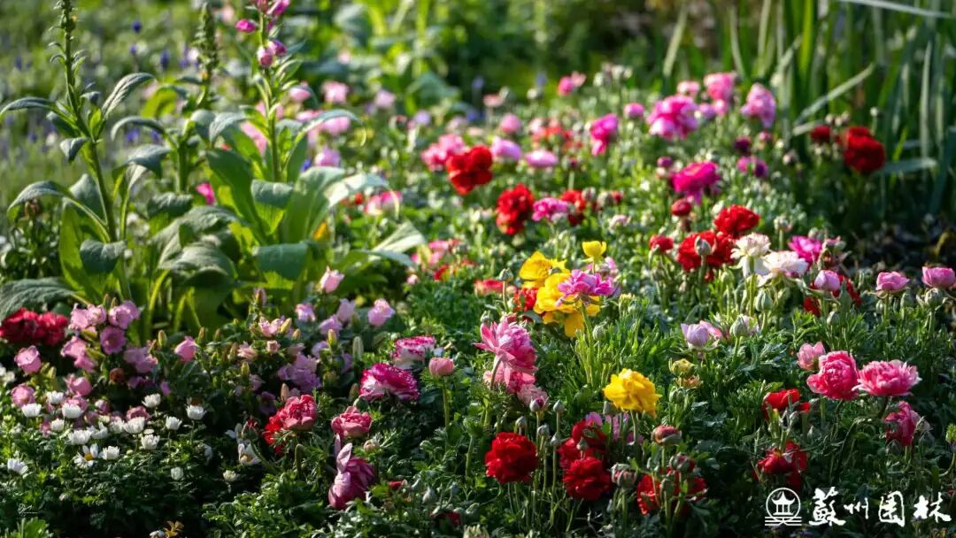 构成错落有致、层次丰富的春日花卉景观