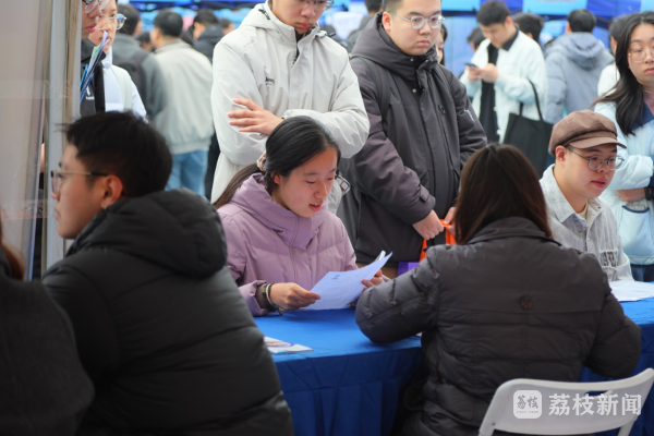 值得注意的是,各地“抢才”力度空前。徐州、无锡、苏州、济南等7个城市由当地人社部门牵头,组织了160余家本地企业组团参会,并现场开展政策宣讲、直播带岗等活动,为毕业生提供了丰富的属地化就业选择,校地合作引才模式成效显著。