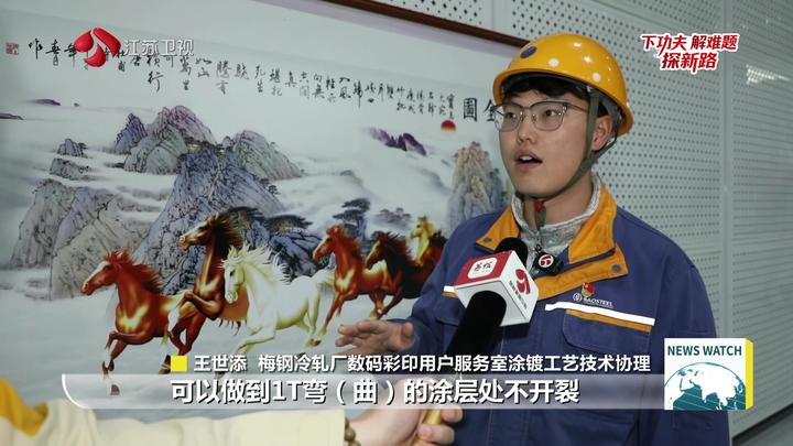 梅钢冷轧厂数码彩印用户服务室涂镀工艺技术协理王世添说:“它可以在户外做到色彩的长期稳定,可以做到1T弯曲的涂层处不开裂。我们整条产线也绿色环保,它用到了国内外最先进的油墨固化技术,每年节省电力在1700万千瓦时左右。”