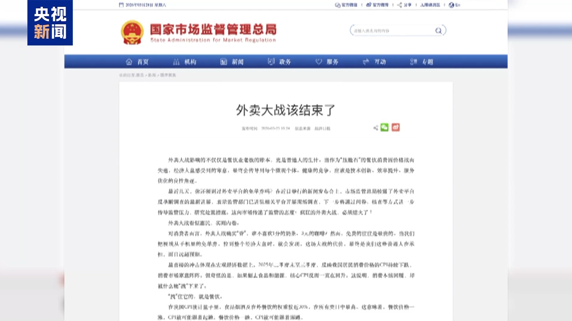 紧接着,国家市场监督管理总局官网刊登媒体文章,明确喊出“外卖大战该结束了”。