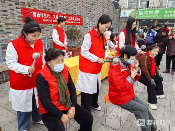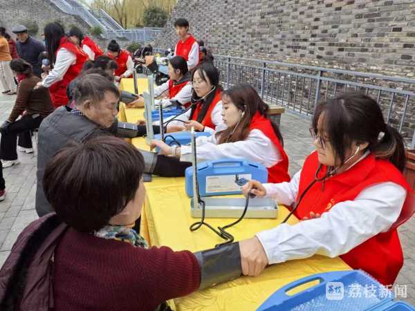 今天(3月5日)下午,在全国学雷锋纪念日之际,扬州职业技术大学医学院红医先锋队来到高邮北门大街瓮城遗址公园,为高邮御码社区居民开展公益义诊志愿服务。