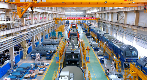 2025年8月12日,在中车大连机车车辆有限公司,工作人员正在进行总装作业。(受访单位供图)