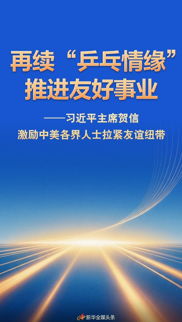 原标题:再续“乒乓情缘”推进友好事业——习近平主席贺信激励中美各界人士拉紧友谊纽带
