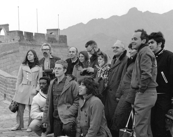 1971年4月12日,美国乒乓球代表团游览长城时合影。新华社记者 汤孟宗 摄