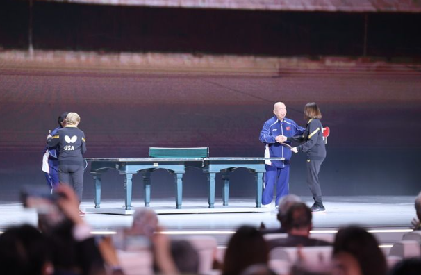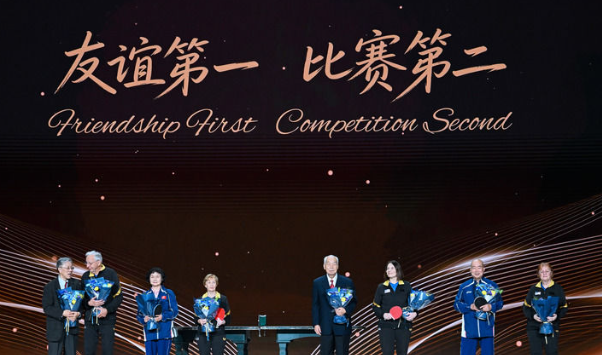 “55年前,中美老一辈领导人以卓越的政治智慧和战略远见,重新开启两国人民友好往来的大门,成就了‘小球转动大球’的历史佳话。”习近平主席在贺信中回顾的“乒乓外交”传奇故事,让纪念大会现场所有人再次重温半个多世纪前难忘的温暖记忆。