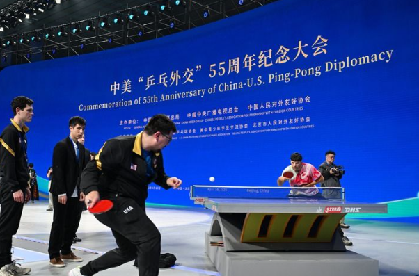 4月10日,国家主席习近平向中美“乒乓外交”55周年纪念大会暨中美青少年体育交流系列活动启动仪式致贺信。
