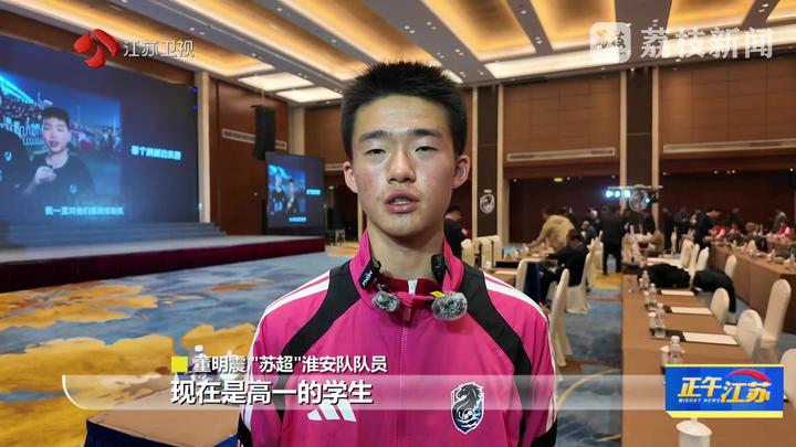 “苏超”淮安队队员董明震说:“我现在是高一的学生,入选淮安队心情十分兴奋。‘苏超’这个平台给我们带来了很多快乐,让很多年轻球员对足球更加热爱。”
