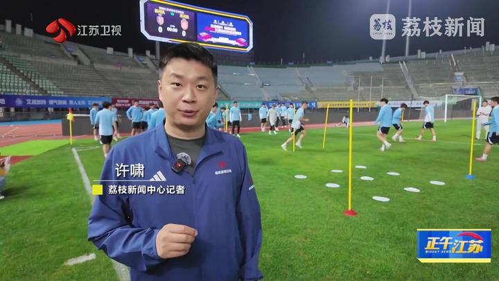 荔枝新闻中心记者许啸说:“我现在所在的地方是扬州体育公园体育场,这块场地上将会进行2026年江苏省城市足球联赛首轮比赛,扬州队主场迎战苏州队,现在我们看到全新的扬州队已经集合完毕,正在进行训练。”
