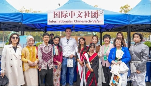 欢送活动当天,学校组织了外场与内场两个环节。外场以舞龙表演开场,龙身翻腾、气势昂扬。随后,无人机悬挂中德双语横幅腾空而起,象征两校友谊扬帆启航、共向未来。现场还布置了漆扇、投壶、汉服体验、中药手串制作等十余个社团互动展位。内场环节中,两校正式签署友好合作协议并发放聘书,开启常态化交流合作新篇章。