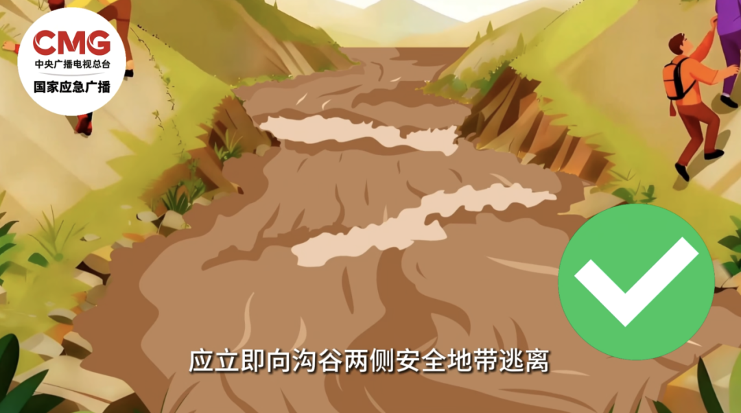 若在山区突遇山洪,应立即向沟谷两侧安全地带逃离,绝不能顺着沟谷向下游或上游跑。