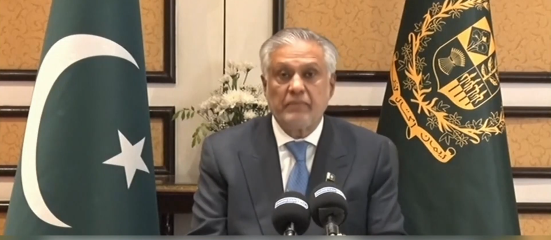 当地时间12日,巴基斯坦副总理兼外长达尔举行发布会。