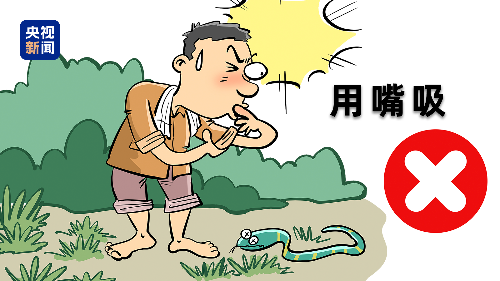 刘红升提醒,不慎被蛇咬伤后,应遵循“不延误、不伤害”原则,避免用嘴吸毒、随意捆扎、切开伤口放血、冰敷等急救误区,立即就近就医(有抗蛇毒血清的医院)。