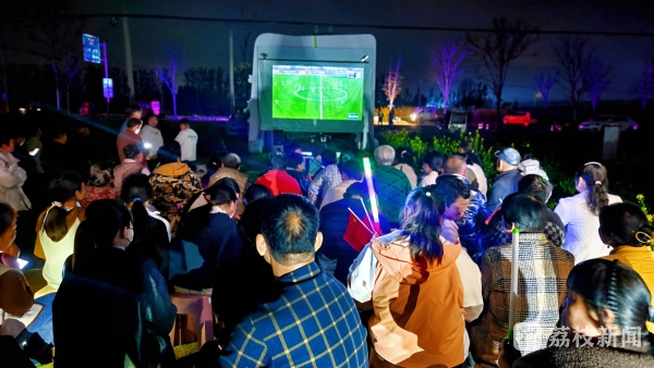 现场同步开放乡野美食市集,汇聚乡村特色小吃与饮品,在增添游玩乐趣的同时,助力商户增收。夜幕降临,大屏实时转播“苏超”开幕式,村民与游客共赏赛事盛况,乡村夜晚洋溢着运动激情与烟火气息。