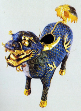 圆明园镇园之宝,海蓝珐琅地、掐丝鳞纹、鎏金眉眼,2015年枫丹白露宫被盗后至今未寻回。
