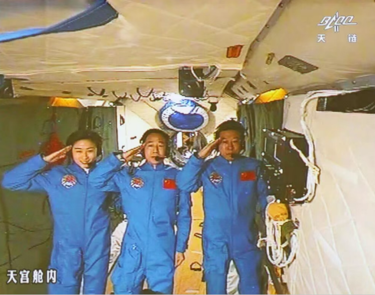 神舟九号载人飞船与天宫一号目标飞行器成功完成我国首次载人空间交会对接。随后,航天员景海鹏、刘旺、刘洋顺利进驻,这是中国航天员首次进驻在轨航天器。