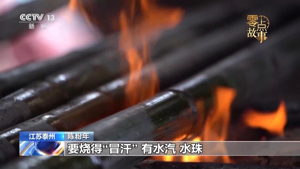 陈粉年:醒篙要火烧得好,如果差一点点烧得不到时候,就压直不下来,要烧得“冒汗”,有水汽、水珠,像淌汗的样子,才能按下来,烧焦又不行。