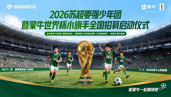 距离2026美加墨世界杯揭幕还有不到两个月,属于足球少年们的顶级福利来了!2026苏超要强少年团暨蒙牛世界杯小旗手全国招募正式启动,只要你热爱足球,就有机会近距离接触“苏超”赛事,同时解锁世界杯决赛现场参与资格!